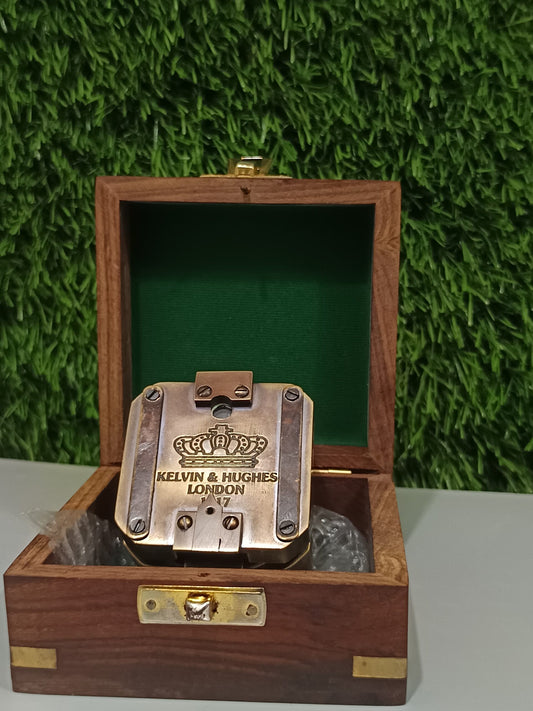 Vintage Brass Compass with Wooden Box