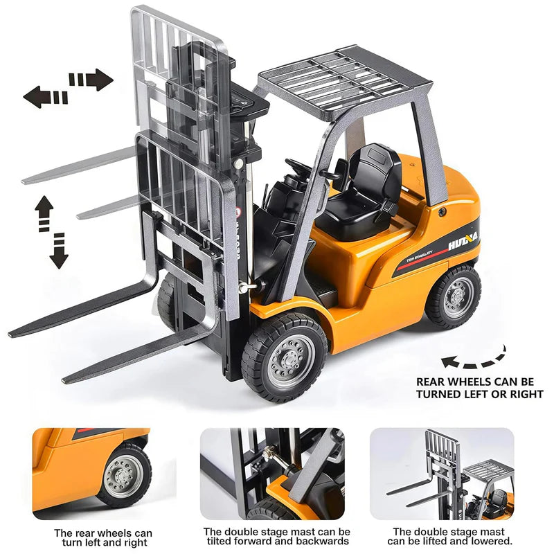 Experience realistic construction play in a compact form with the Engineering Construction RC Forklift Truck. Built with a durable alloy body and designed at a detailed 1:64 scale, this off-highway RC Forklift delivers smooth remote operation, engaging lighting effects, and fun music features. Controlled via 2.4G wireless technology and mobile app, it offers precise handling and an immersive play experience for kids and collectors alike.