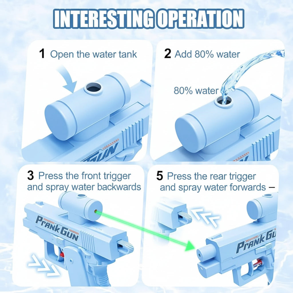 Prank Reverse Water Gun Two Way Front and Rear, Double Spray Squirt Gun Toy for Kids and Adults Ideal for Summer, Pool, Beach