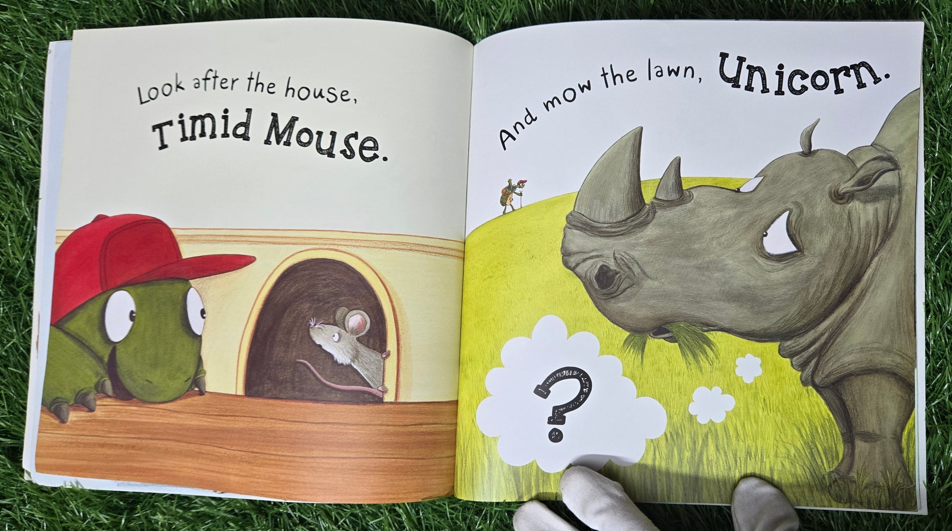 His animal friends appear startled as he suddenly pops up on each page to say adieu—especially the perplexed rhinoceros the tortoise mistakes for a unicorn! With each farewell, the tortoise’s good-byes get sillier and more creative. When will the good-byes end and the adventure begin?