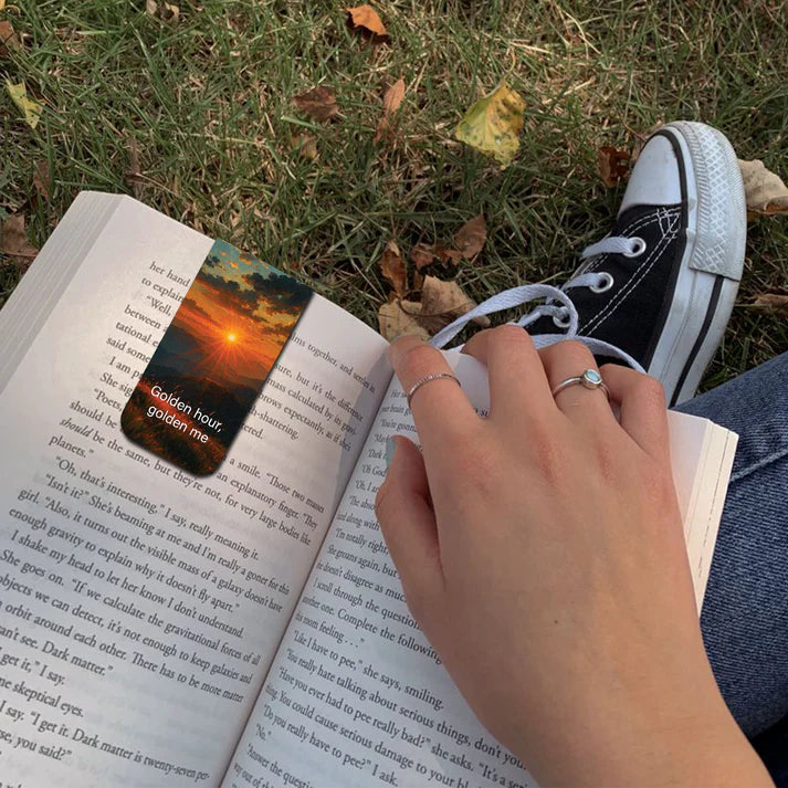 You'll get a total of 12 unique magnetic bookmarks, offering the best of both worlds. Journey through the cosmos with 6 breathtaking designs inspired by golden hour sunsets 🌅 and shimmering auroras ✨. Then, add a pop of fun with 6 vibrant floral patterns, including gentle wildflowers, playful butterflies 🦋, and an adorable garden cat 🐈.