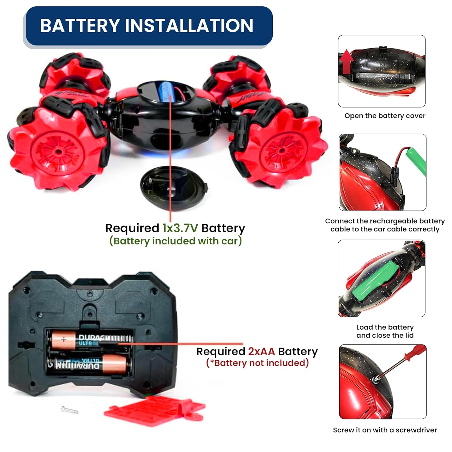 - [๐๐ฆ๐๐ซ๐ญ ๐๐๐ฆ๐จ๐ญ๐ ๐๐จ๐ง๐ญ๐ซ๐จ๐ฅ ๐๐จ๐๐๐ฌ] - Features advanced 2.4G Remote control Twisted Rc Stunt Car for responsive, long-distance control. Includes a unique gesture-sensing watch remoteโjust wear it on your wrist and control the car through hand movements for seamless driving and transformation.